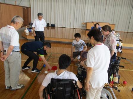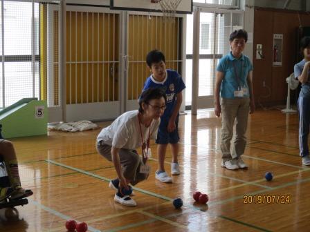 7月24日(水)に、同じ高等部の生徒が、地域の皆さん9名とボッチャで交流しました。
