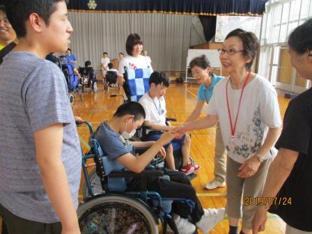 対戦後は互いに握手を交わしました。勝っても負けても一緒にゲームを楽しむことができました。地域の皆さん、ありがとうございました。