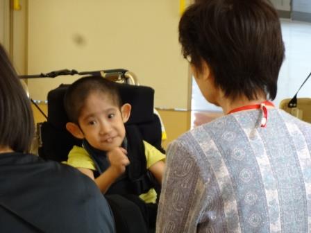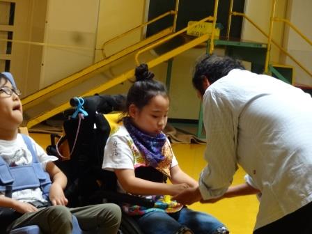 近くで手を触れ合い、自己紹介をしました。はじめは少しだけ緊張していました。